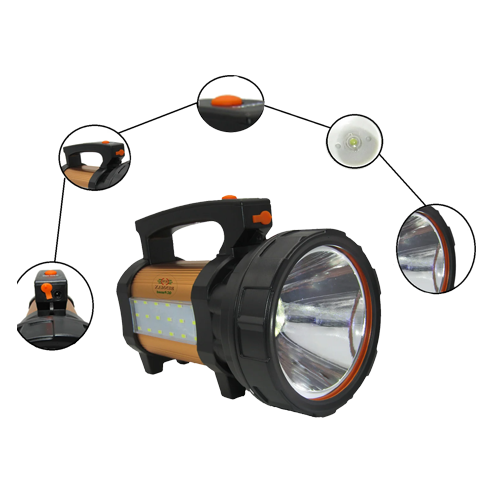 RENMAX Rechargeable Search Zoom Focus Torch High Brightness 500W 3Km Range High/Low/Blinker & Tail Light (White/Red-Blue Blinker) Waterproof 4-8 Hours Working Metal Body Black -1Pc